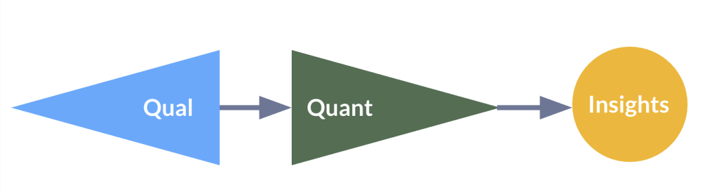 AI moderated interviews, in their current use, run into systemic problems of rigorous execution. Perhaps the most common mixed-method design in UX research is exploratory sequential design: start with qualitative research to define what you care about by generating or uncovering the things you want to count, then use quantitative work to count those things you care about differentiating.